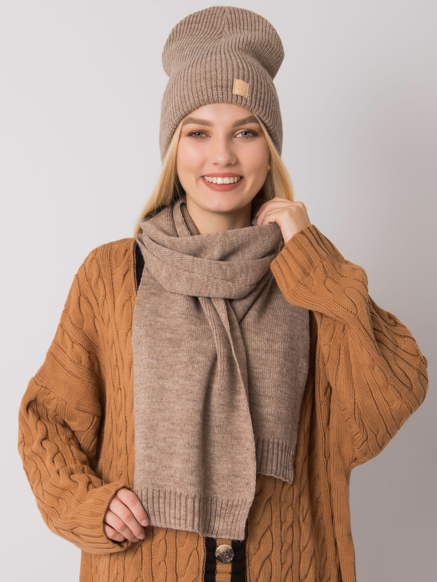 Ciemnobeżowy komplet dzianinowy na zimę RUE PARIS Produkcja polska